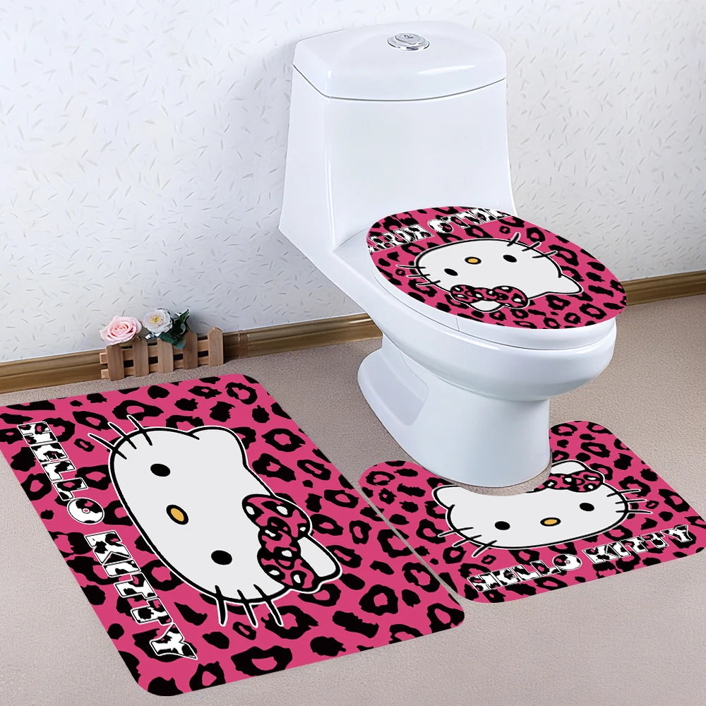 Sanrio Hello Kitty Bathroom Four-Piece Set - Avant-garde Waterproof Shower Curtain, creating a complete bathroom kit